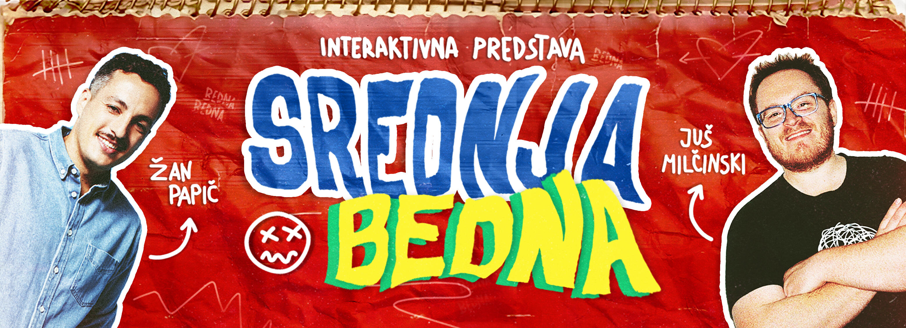 Kaj je skupnega srednji šoli in občutku bednosti? Vse. Tako vsaj pravi stand-up komik Žan Papič, ki je sam v srednji šoli večkrat sedel v klopi in si želel, da bi mu kdo povedal, da ni edini, ki se počuti… čudno. Zato je skupaj z igralcem Jušem Milčinskim ustvaril edinstveno predstavo, ki mladim ne soli pameti – ampak jih vključuje.Predstava Srednja Bedna ni "predavanje", temveč živ dialog s srednješolci. Skozi smeh, osebne zgodbe in igrane prizore mlade nauči: small talka, izražanja svojih občutkov, sprejemanja drugačnih mnenj, sprejemanja in dajanja pohval – in najtežje od vsega: sprejemanja sebe.Predstava ni samo ogled – je sodelovanje! Dijaki skozi interaktivne naloge in pogovor aktivno sodelujejo, delijo pohvale in v tem celo tekmujejo. Ja, prav ste slišali. Ker v šoli vsi tekmujejo v ocenah, športu in znanju – zakaj pa ne tudi v tem, kako biti dober človek, prijatelj, sošolec ali sošolka?Na koncu razglasimo zmagovalca z "Naj pohvalo", ki prejme prav poseben pokal.Avtorski projekt Žana Papiča in Juša Milčinskega.